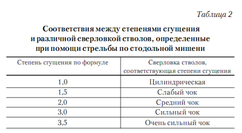 Задача пристрелки. Пристрелять ружье – это значит определить на дистанцию 35 м: • Меткость боя, т. е. насколько средняя точка попадания центров осыпей совпадает с точкой прицеливания. Для этого надо взять 5–6 листов бумаги размером 1×1 м для каждого ствола, нарисовать точку прицеливания и стрелять по листам с упора патронами, заряженными крупной дробью. Затем определить центр осыпи путем накладывания вычерченной на кальке сетки стодольной мишени, совместив центр сетки с центром осыпи. Центр осыпи не должен отклоняться от точки прицеливания больше чем на 10 см. • Резкость боя, под которой подразумевается пробивная способность дроби. Зависит резкость боя от начальной скорости дроби, ее твердости и качества обработки. Следует иметь в виду, что с уменьшением веса снаряда дроби и увеличением заряда пороха резкость будет возрастать, а кучность уменьшаться. На охоте же важнее резкость, чем чрезмерная кучность со слабой резкостью. Отличной резкостью можно считать такую, когда при стрельбе по щиту из струганых сухих сосновых досок центральные дробины проникают в дерево больше, чем на три своих диаметра; хорошей – при углублении до трех диаметров; удовлетворительной – от полутора до двух диаметров. • Кучность боя, которая определяется процентом количества пробоин в кругу диаметром 80 см на дистанцию 35 м по отношению к общему количеству дробин в снаряде. Кучность считается отличной: для строго цилиндрической сверловки – 35 %; для цилиндра с напором в 0,10–0,25 мм – 45–55 %; для получока при сужении 0,5 мм – 60 %; для чока с сужением 0,5–0,75 мм – 70 %; для чоков при сужении 0,8–1,2 мм – 80–90 %. Но лучше судить о кучности осыпи дробового снаряда по количеству дробин, попавших в мишень (табл. 1, 2).