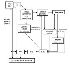 Круговорот азота. Азот и его соединения играют в жизни биосферы, в формировании почвенного покрова и плодородия экосистемы такую же важную роль, как и углерод. Общая направленность биогеохимического круговорота азота на планете – аккумуляция в молекулярной форме в атмосфере, которая на 78% состоит из молекул N2. Начальное появление азота в атмосфере, вероятно, было связано с дегазацией верхней мантии, магмы и вулканическими выделениями.