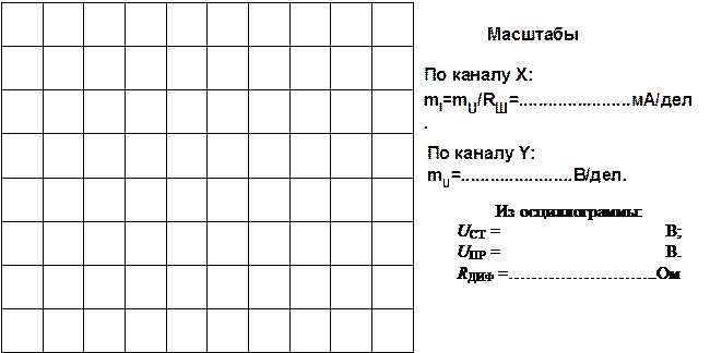 Порядок выполнения эксперимента. Перенесите изображение с экрана осциллографа на график (рис.2.2.3)