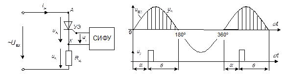 Общие сведения. Принцип действия тиристорного управляемого однополупериодного выпрямителя поясняется на рис