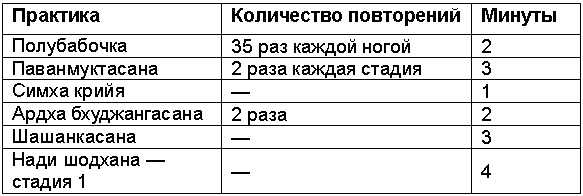Используйте любую из следующих программ, видоизменяя её по своему усмотрению. Мы опустили ряд практик из предшествующих уроков. Добавляйте их по мере необходимости. Если в какой‑то момент вы почувствуете потребность в отдыхе, в течение нескольких минут выполняйте шавасану перед тем как начать следующую практику, или когда у вас найдётся время в течение дня.