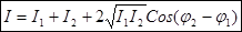 При наложении когерентных волн интенсивность результирующей волны в каждой точке пространства определяется выражением: (1), где - интенсивности накладывающихся волн, - разность фаз возбуждаемых волнами колебаний.
