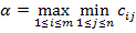 Если игрок А выберет стратегию Аi, то все его возможные выигрыши будут элементами i -й строки матрицы С. В наихудшем для игрока А случае, когда игрок В применяет стратегию, соответствующую минимальному элементу этой строки, выигрыш игрока А будет равен числу Следовательно, для получения наибольшего выигрыша, игроку А нужно выбирать ту из стратегий, для которой число · Число