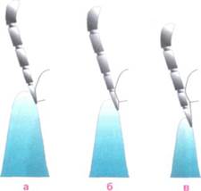 Рис. 7.5. Методика зондирования для обнаружения межзубных кратерообразных (воронкообразных) дефектов кости.