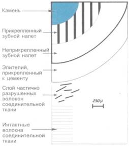 Рис. 7.8. Составные компоненты в области цементной стенки периодонтального кармана.