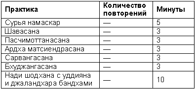 Программа ежедневных занятий. В этот урок мы включили описание уддияна бандхи, гарудасаны и второй части практик нада йоги наряду с четвертой и последней частью обсуждения