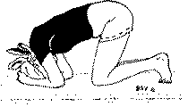 Эта стадия может оказаться немного трудной, если у вас негибкое тело; не двигайтесь дальше, пока вы не сможете с удобством подтягивать бедра к туловищу без малейшей тенденции к опрокидыванию на спину. Последняя часть стадии 3 оказывается трудной, если не держать туловище как можно более вертикально, чтобы центр тяжести был максимально смещен назад; поэтому старайтесь держать туловище как можно ближе к вертикальному положению, но без утраты равновесия и опрокидывания на спину. Полностью перенесите вес тела на руки и голову. Попробуйте поднять одну ступню, затем обе ступни вместе примерно на двадцать сантиметров над полом, сохраняя равновесие. Для большинства начинающих это движение оказывается трудным. Обычно эти трудности возникают из‑за неспособности держать туловище вертикально, в результате чего оказывается невозможно поднять ступни, не опрокидываясь вперед или назад. Со временем и по мере тренировки это станет легче. Если вы чувствуете любую неустойчивость, то позвольте ступням легко коснуться пола и повторите процесс. Не давайте телу перевешивать назад; предпочтительнее позволять ему перевешивать вперед. Если вы не уверены в себе, то занимайтесь у стены. Эта стадия не является по‑настоящему трудной, но требует немного времени и практики. Не поднимайте ступни больше чем, скажем, на пятнадцать сантиметров от пола, пока не будете абсолютно уверены в том, что сможете поднять их выше, сохраняя равновесие. Затем переходите к стадии 4[217]. Предостережение На стадии 3 не пытайтесь рывком закидывать ноги вверх — это самый верный способ потерять равновесие и опрокинуться на спину. Выполняйте каждое движение плавно и контролируемо, сокращая мышцы спины и постепенно перестраивая положение равновесия (центра тяжести) при подъеме ног.