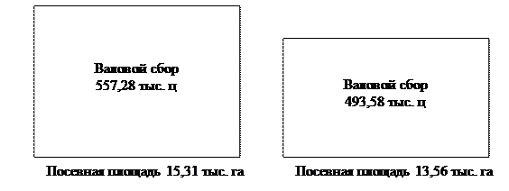 Фигурные диаграммы. В картинных (фигурных) диаграммах величина изображаемого показателя пропорциональна площади фигуры, изображающей данное явление. Знаки Варзара – прямоугольники, основание которых отражает величину одного показателя, высота – величину второго показателя, площадь – величину третьего показателя, являющегося результатом произведения двух первых (рисунок 7.4.5). Эти знаки удобны для выявления роли отдельных факторов в изображаемых сложных явлениях.