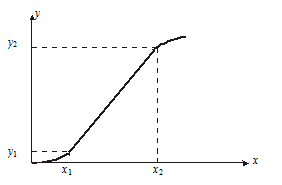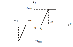 Рис. 2.11. Характеристика с зоной нечувствительности и зоной насыщения (электродвигатели | x |<| x 1| – зона нечувствительности; | x | ≥ | x 2| – зона