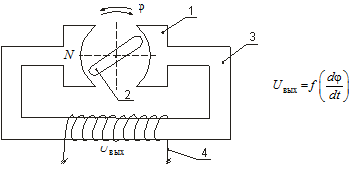 Это устройства, состоящие из катушки с электрообмоткой и магнитной системы, которые преобразуют входной параметр (скорость угловых или линейных перемещений) в ЭДС. Принцип действия основан на том, что в катушке при изменении магнитного потока образуется ЭДС. Величина этой ЭДС равна