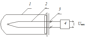 Рис. 5.13. Датчик температуры на основе термопары: 1 – защитная колба датчика; 2 – термопара; 3 – контактный