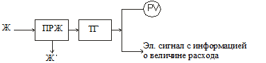 Рис. 5.20. Структурная схема расходомера жидкости: ПРЖ – преобразователь расхода жидкости; Ж – жидкость; ТГ – тахогенератор;