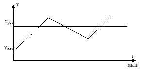 Рис. 9.2. Процесс жесткого управления: t – время (мин); х нач – начальное значение контролируемой