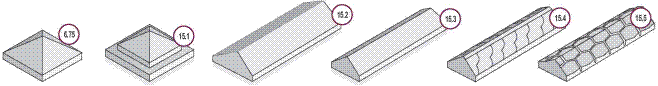 Бордюр полукруглый 9.4.1 (200х850х110); Бордюр прямой 9.4.2 (200х940х110); Шар на подставке 9.4.3 (370х175х170); Бордюр полукруглый 9.5.1 (220х790х80); Бордюр прямой 9.5.2 (220х1000х80);