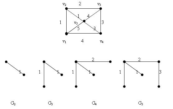 На четвертом шаге алгоритма получили дерево G5, которое соединяет все вершины исходного графа. Таким образом, дерево G5, будет минимальным остовным деревом графа G.