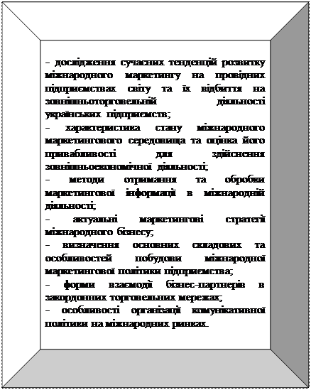 - Визначити основні завдання та предмет вивчення курсу «Міжнародний маркетинг».