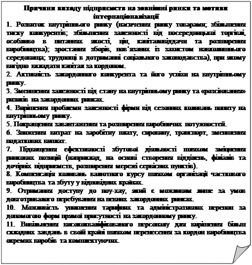 - Які основні мотиви виходу підприємства на зовнішні ринки?