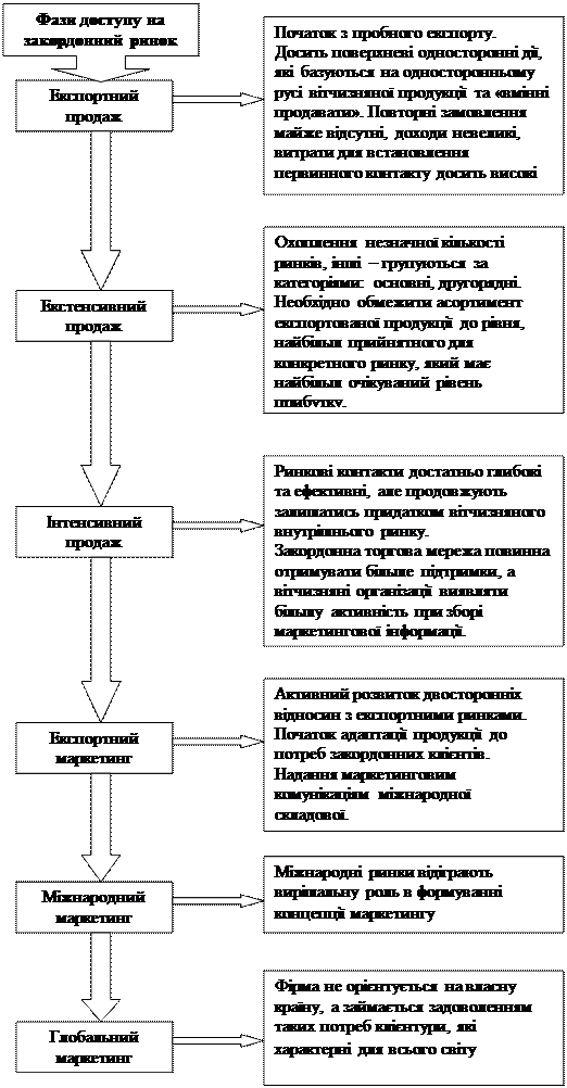 | Етапи інтернаціоналізації (розвитку маркетингу) підприємства