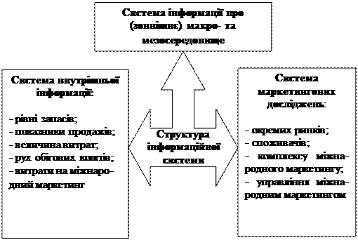 - Які основні складові системи інформаційного забезпечення міжнародного маркетингу?
