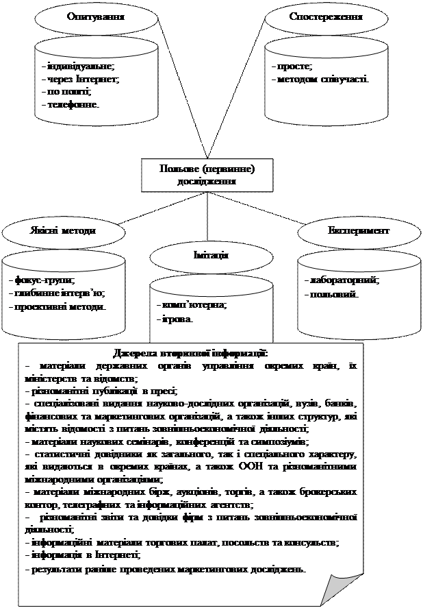 - Які існують джерела отримання вторинної інформації для дослідження міжнародного маркетингового середовища?