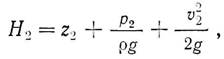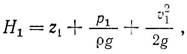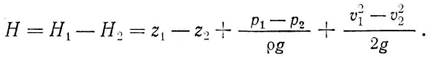 где р — давление, Па; ρ — плотность жидкости, кг/м3; g — ускорение свободного падения, м/с2; z— отметка уровня центра потока относительно принятой плоскости сравнения (высота), м; v — скорость, м/с. Эти выражения представляются либо в линейных единицах высоты, либо в удельных энергетических, Дж/Н. Отданная водой рабочему колесу энергия будет равна разности энергий в потоке рабочего колеса до и после него: