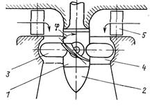 Рис. 6. Рабочее колесо поворотно-лопастной турбины. 1 — корпус рабочего колеса; 2 — обтекатель; 3 — лопасти; 4—камера рабочего колеса; 5 — лопатки направляющего аппарата.