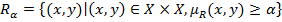 Определения и операции над нечеткими отношениями. Переход или обобщение – от обычного отношения до нечеткого в принципе является таким же, как переход от обычного множества до нечеткого. Описание нечеткого отношения должно таким образом включать не только указание пар результирующего множества, но и числа из интервала [0,1], которые отображают степень выполнения нечеткого отношения для этих пар. Определение нечеткого отношения. Нечетким отношением R на множестве X называется нечеткое подмножество декартового произведения Носителем нечеткого отношения R на множестве Х называется нечеткое подмножество декартового произведения Под носителем нечеткого отношения понимаем обычное отношение на множестве Х, которое связывает все пары (x,y) такие, для которого степень выполнения этого отношения >0. В случае конечного множества Х матрицу носителя можно получить, заменив в матрице первичного нечеткого отношения все не нулевые элементы единицами. Поскольку нечеткое отношение определяется как нечеткое множество, соответственно и ее множества уровня определяются следующим образом: Таким образом множество уровня Операции над нечеткими отношениями. Пусть на множестве Х заданы два нечетких отношения А и В. Нечеткие множества С=А⋃В,D=А⋂В называются соответственно объединением и пересечением нечетких отношений А и В, если функции принадлежности отношений C и D имеют следующий вид Пусть на множестве Х заданы два нечетких отношения А и В. Нечеткое отношение В включает в себя нечеткое отношение А, если для них выполняются соотношение А⊑В, то есть для функции принадлежности Дополнением нечеткого отношения R на множестве Х называется нечеткое отношение R’ с функцией принадлежности Обратным к нечеткому отношению R отношением R-1 ,yRx↔xR-1y на множестве Х называется нечеткое отношение с функцией принадлежности Максиминным произведением А○В нечетких отношений А и В на множестве Х являются нечеткие отношения, которые определяются следующей функцией принадлежности: