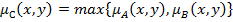 Максимультипликативным произведением нечетких отношений А и В на множестве Х является нечеткое отношение, которые определяются следующей функцией принадлежности:
