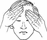 Для того чтобы завершить этот набор носовых массажей, мы изучим технику Растирания Лица. Существуют в буквальном смысле десятки очень специфических техник массирования лица. Мы рассмотрим простой, общий метод. 1. Разогрейте руки растиранием. 2. Трите руками вверх-вниз по щекам, пока ваши руки не начнут остывать. 3. Разотрите руки снова и разотрите еще раз лицо и лоб. 4. Почувствуйте, как тепло из ваших рук переходит в кожу вашего лица и лба. 5. Потрите руки еще раз и закройте ими правый и левый глаз. Вбирайте тепло по меньшей мере 10 секунд. Если вы чувствуете напряжение или стресс во время выполнения этих упражнений, можете попробовать делать следующее. Когда вы вдыхаете, про себя проговаривайте «спокоен», а когда выдыхаете, говорите «расслаблен». Как можно быть напряженным, когда вы спокойны и расслаблены?