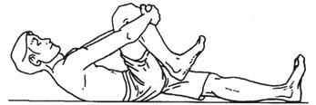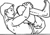 5. Приподнимите голову и плечи над землей, при этом плечи и шею держите ровными. Не сгибайте шею, когда будете ее поднимать. 6. Голову и плечи не нужно поднимать больше, чем на несколько дюймов. Когда будете подтягивать правое колено, оно не должно коснуться подбородка. 7. Сделайте выдох и расслабьтесь. Повторите минимум три раза за занятие. 8. Повторите то же самое с поднятым левым коленом и выпрямленной правой ногой. Вариант Б: группировка с подниманием обоих коленей 1. Лягте ровно на спину, подняв и согнув оба колена, пятки прижаты к ягодицам, подошвы стоп стоят на полу. Сделайте вдох Брюшного Дыхания. 2. Переплетите пальцы рук и обхватите оба колена руками. 3. Приподнимите ягодицы над землей и выровняйте среднюю часть спины, прижмите ее плотно к земле. 4. Потяните оба колена к голове.