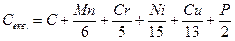 Друга формула скорочена, але достатньо перевірена і надійна. У формулі замість позначень хімічних елементів підставляється їх процентний вміст в зварюваному матеріалі. Всі стали по здатності до зварювання розділяються на чотири групи: 1. Добре зварюються (Секв до 0,25%) 2. Задовільно зварюються (Секв=0, 25 - 0, 3 %) 3. Обмежено зварюються (Секв=0, 35 - 0, 45 % 4. Погано зварюються (Секв більш 0, 45 %) Всі характеристики матеріалів (хімічний склад, механічні властивості) привести в таблиці.
