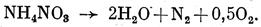В граммолекуле аммиачной селитры (80 г) содержится 48 г кислорода. На окисление горючих элементов, входящих в состав молекулы аммиачной селитры (водород), потребуется 32 г кислорода. Следовательно, аммиачная селитра имеет положительный кислородный баланс, равный КБ=(48-32)/80*100=+20%.