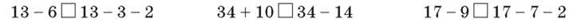 • У першому стовпчику 16 прикладів, у другому — 12 прикладів. Скільки всього прикладів у двох стовпчиках? • В одному стовпчику 12 прикладів, а в другому — на 5 прикладів менше. Скільки прикладів у другому стовпчику? • У двох стовпчиках 43 приклади. Скільки прикладів у другому стовпчику, якщо в першому стовпчику їх 13? • Учень мав розв’язати 35 прикладів. Увечері він розв’язав 14 прикладів. Скільки прикладів йому залишилося розв’язати? • Після того, як учень розв’язав 32 приклади, йому залишилося розв’язати 25 прикладів. Скільки прикладів він мав розв’язати? • Учень мав розв’язати 56 прикладів, після того, як він розв’язав декілька прикладів, йому залишилося розв’язати 24 приклади. Скільки прикладів розв’язав учень?