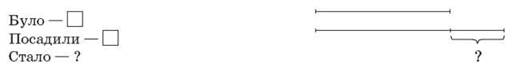 3. Знаходження значень виразів зі змінною — Знайдіть значення виразу: • 17 - (в - 4), якщо в = 11; 12; 10. • 24 - (а + 2), якщо а = 2; 10; 12. 4. Офтальмологічна пауза 5. Додаткові вправи (с. 46) • Заповніть таблицю. • Петрик, Андрій і Романко — брати. Петрику і Романкові разом 8 років, а Андрію і Романкові разом 10 років. Хто з дітей найстарший, якщо Романко наймолодший? (Найстарший — Андрій.) • За схемою • Побудуйте прямокутник, ширина якого 2 см, а довжина 6 см. Проведіть у ньому 2 відрізки так, щоб утворилися квадрати. Знайдіть суму периметрів цих квадратів. (Р = 2 + 2 + 3 + 3 + 2 + 2 + 3 + 3 = 20 см) • У класі 30 учнів. На урок образотворчого мистецтва фарби принесли 18 учнів, а олівці — 20 учнів. Скільки учнів принесли на урок і олівці, й фарби? (18 + 20 - 30 = 8) • Доберіть числові дані. Складіть і розв’яжіть задачі за короткими записами. Зробіть короткі записи обернених задач до обох поданих.
