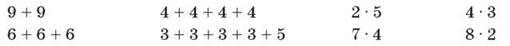 V. УЗАГАЛЬНЕННЯ Й СИСТЕМАТИЗАЦІЯ ЗНАНЬ (див. додаток до уроку) 1. Гра «Заміни!» — Замініть, де це можливо, дію додавання множенням, а дію множення додаванням.
