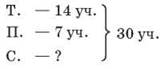 Усне розв’язування задачі із записом виразу на дошці: 30 - (14 + 7) = 9 (уч.) 2) Розв'язування задачі за планом. План а) Скільки учнів розучують пісні? б) Скільки всього учнів готують танці і розучують пісні? в) Скільки учнів учать вірші? Сильніші учні, скориставшись планом, самостійно записують розв’язання у зошити. Решта учнів разом з учителем розглядають план розв’язання і визначають дії. Завдання 856 Учні «ланцюжком» обчислюють вирази і порівнюють з числом.