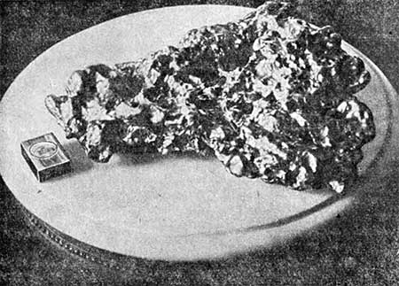 Наши русские самородки много меньше, и самый знаменитый, найденный в 1837 году на Южном Урале, весил всего около тридцати шести килограммов. Бывает, что в одном небольшом участке земли накапливаются громадные количества драгоценного металла: так, в знаменитом Клондайке, в полярных частях Америки, на маленькой площади в двести квадратных метров было найдено золота на миллион рублей. Какое же место во всей этой картине занимает наша страна? В 1745 году Дорофей Марков во время поисков хрусталя для икон Троицкой лавры открыл первое надежное месторождение золота на Урале. С тех пор русское горное дело постепенно расширялось и развивалось. Были найдены и новые месторождения. Существовали особые бюро Горного Управления, которые публиковали кое-какие цифры добычи по годам и десятилетиям. Но было бы ошибочным видеть в этих цифрах действительное количество добытого в России металла. От официальной царской статистики ускользала большая доля золота, — частью она уходила в Китай и скупалась там заграничными агентами, частью пряталась «в бородах и сапогах» старателей и поступала прямо в руки частных торговцев и ювелиров. Поэтому, вероятно, не будет ошибкой, если мы примем всё количество добытого в старой России золота не менее чем в четыре тысячи тонн. Много написано замечательных страниц у Лескова, у Мамина-Сибиряка и других писателей о «бешеном золоте» тех времен, когда слепая судьба превращала в богачей одних и разоряла других, когда с каждым золотым прииском Урала или Сибири были связаны легенды о сказочных богатствах, самородках, сверкающих гнездах золота и столь же бесконечные рассказы о преступлениях, непробудном пьянстве, кутежах, о невиданном счастье и незабываемом горе. Случайная находка золота в царское время давала возможность хищнику поставить через всю улицу своего села сплошной строй бутылок водки, а старательнице — надеть на себя три-четыре шелковых юбки, одну на другую… Ни один металл не возбуждал столько страстей, не разжигал столько желаний и готовности идти на самые тяжелые лишения в надежде на «золотые горы», как золото. Вот картины старых сибирских поисковых партий, талантливо нарисованные геологом Л. А. Ячевским:
