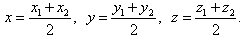 2. Координаты (x;y;z) середины отрезка с концами A1(x1;y1;z1) и A2(x2;y2;z2) находятся по формулам: