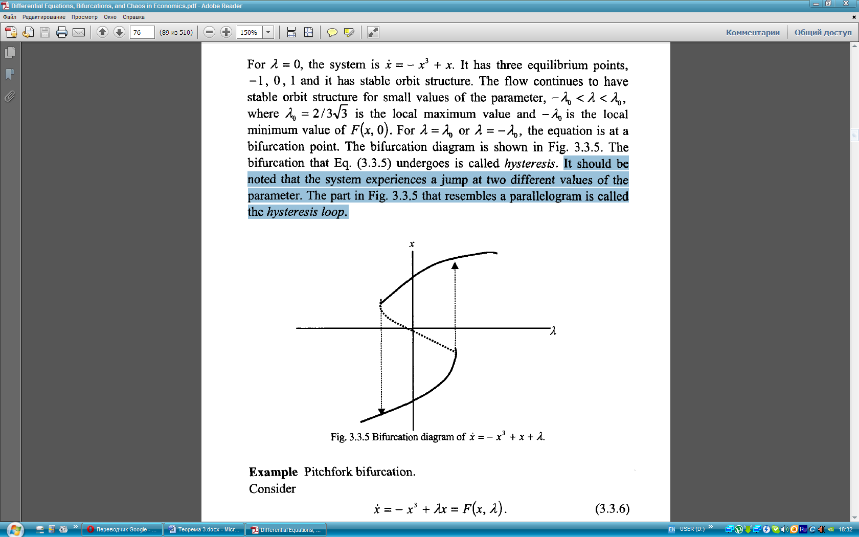 Чтобы продемонстрировать гистерезис, используем кубическое дифференциальное уравнение