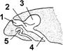 От желудочка самостоятельно отходят три сосуда: легочная артерия, несущая венозную кровь к легким, правая и левая дуги аорты. Большой круг кровообращения начинается дугами аорты. Правая дуга аорты выходит из левой части желудочка и несет артериальную, насыщенную кислородом кровь. От нее отходят сонные артерии, несущие кровь к головному мозгу, и подключичные артерии, снабжающие кровью передние конечности. Левая дуга аорты берет свое начало из средней части желудочка и несет смешанную кровь. Обе дуги сливаются в спинную аорту, снабжающую кровью остальные органы. Венозная система схожа с таковой у амфибий: венозная кровь от органов тела собирается в парные передние и задние полые вены, в свою очередь впадающие в правое предсердие. Малый круг начинается легочной артерией, отходящей от правой стороны желудочка. Венозная кровь доставляется к легким, там происходит газообмен, и артериальная кровь по легочным венам возвращается в левое предсердие. Хотя кровеносная система совершеннее, чем у амфибий, обмен веществ недостаточен для поддержания постоянной температуры тела, поэтому рептилии не имеют постоянной температуры тела, пойкилотермны. © Нервная система. Головной мозг рептилий, как и у всех позвоночных животных, состоит из пяти отделов: передний мозг, промежуточный мозг, средний мозг, продолговатый мозг и мозжечок. Полушария пе- переднего мозга относительно крупнее, чем у амфибий, и почти полностью прикрывают промежуточный мозг. Передний мозг выполняет ведущую роль в организации поведения и имеет зачаточную кору из серого мозгового вещества (зачатки неопаллиума, новой коры), однако она развита слабо, и большая часть нервных клеток содержится в глубинных слоях мозга. В связи с активностью и сложностью движений хорошо развит мозжечок. Механические раздражения воспринимаются рептилиями с помощью осязательных волосков, которые располагаются на чешуйках и связаны со скоплениями чувствительных клеток, располагающихся под эпидермисом.