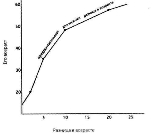 Первобытные мужчины отдавали предпочтение женщинам, способным родить много детей, поэтому они обращали внимание на два основных фактора: молодость и здоровье. Чем моложе женщина, тем больше детей она успеет родить. Репродуктивная способность женщины достигает своего пика в 20 лет. В 30 лет этот показатель находится на среднем уровне, в 40 — на низком, а в 50 сходит на нет. Вот почему и современных мужчин тянет к молодым женщинам — то есть к тем, кто обладает высокой репродуктивной ценностью. Вот почему чем моложе женщина, тем выше для нее риск быть изнасилованной. Статистика показывает, что в США 85% жертв изнасилования моложе 36 лет, то есть этот показатель напрямую связан с женской репродуктивной ценностью. Как правило, мужчины хотят, чтобы жены были на два-четыре года моложе их. Чем старше становится мужчина, тем более молодых женщин он предпочитает. Профессора Кенрик и Киф анализировали возрастные предпочтения мужчин. Они выяснили, что в 20 лет мужчины предпочитают 1 8-летних девушек, в 35 — тридцатилетних, в 48 — 37-летних, а после 50 лет — женщин на 20 лет моложе себя.