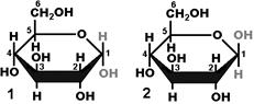 Моносахариды могут быть представлены в форме a- и b-изомеров (рис. 264). Гидроксильная группа при первом атоме углерода может располагаться как под плоскостью цикла (a-изомер), так и над ней (b-изомер). a- и b-изомеры играют важную роль, например, в образовании крахмала и целлюлозы.