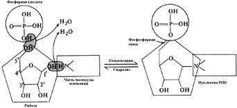 Возникновение фосфодиэфирных мостиков между 3' и 5'-углеродами остатков сахаров может происходить многократно. В результате образуются неразветвленные полинуклеотидные цепи. Один конец полинуклеотидной цепи заканчивается 5'-углеродом (его называют 5'-концом), другой –3'-углеродом (3'-концом).