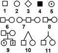 Генеалогический метод. Использование этого метода возможно лишь в том случае, когда известны прямые родственники — предки обладателя наследственного признака (пробанда) по материнской и отцовской линиям в ряду поколений или потомки пробанда также в нескольких поколениях. При составлении родословных в генетике используется определенная система обозначений (рис. 334). После составления родословной проводится ее анализ с целью установления характера наследования изучаемого признака.