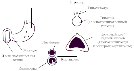 Еще в 1901 году Н. Е. Введенский впервые указал на однообразие реакций живого организма на действие различных агентов. У. Кэннон (1929) полагал, что разнообразные воздействия на организм могут формировать однотипную картину симпатоадреналового синдрома. В соответствии с учением Л. А. Орбели (1949) неоднородные факторы среды вызывают со стороны симпатической нервной системы адаптационную реакцию, которая выражается в изменении ее трофической регуляции. Д. Н. Насонов и В. Я. Александров (1940) создали теорию, согласно которой раздражители любой природы вызывают денатурацию клеточных белков. В результате обратимой альтерации в клетках возникает комплекс однотипных изменений, названных авторами паранекрозом.Однако наиболее подробно неспецифические компоненты адаптации были исследованы Г. Селье (1936). Он показал, что в ответ на действие раздражителей самой различной природы (механических, физических, химических, биологических и психических) в организме возникают стереотипные изменения. Комплекс этих сдвигов получил название общий адаптационный синдром. Такое приспособление выработалось в ходе эволюции как способ адаптации организма с минимизацией затрат морфофизиологических структур.Состояние организма, вызываемое неблагоприятными воздействиями, Г. Селье (1960) назвал реакцией напряжения или стресс-реакцией. Независимо от качества стрессора, т. е. фактора, вызывавшего стресс, реакция напряжения сопровождается совокупностью постоянных симптомов. Важнейшими из них являются: • увеличение коркового слоя надпочечников с уменьшением в них липоидов и холестерина; • инволюция тимико-лимфатического аппарата; • эозинопения; • возникновение язв желудочно-кишечного тракта.