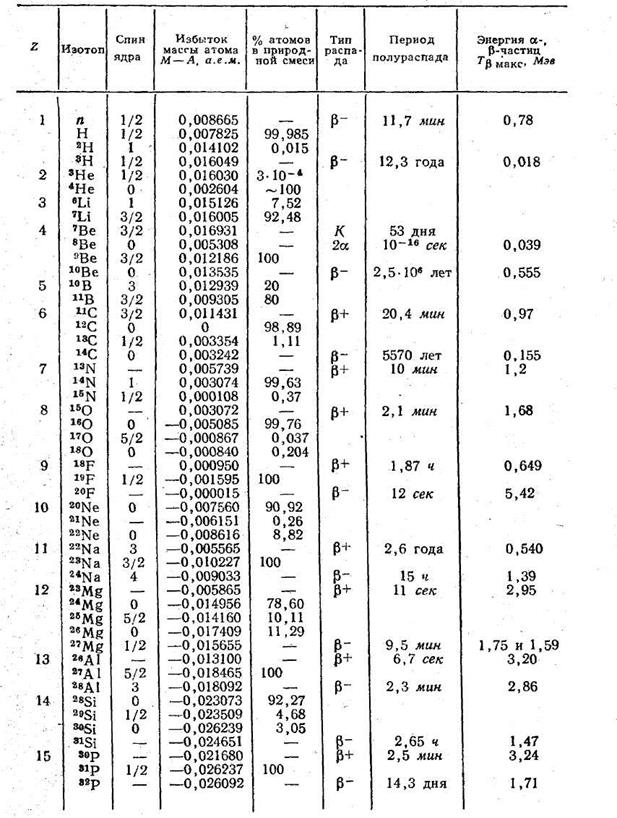 Приложение 1 ТАБЛИЦА СВОЙСТВ ИЗОТОПОВ