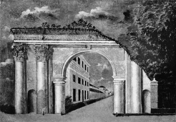 Помещики начала XIX века видели идеал в естественной красоте, а потому решительно меняли пруды на озера, ровные аллеи – на извилистые тропинки, ровно подстриженные газоны – на лужайки, где вместо отдельных деревьев с кронами‑шарами или квадратами зеленели миниатюрные рощицы. Рукотворную природу дополняли «почти как настоящие» водопады, «средневековые» башни, «пастушьи» хижины и руины – строения, стилизованные под ветхость, запущенность, сложенные из разномастных (старых и новых, больших и малых) деталей, для вящего эффекта покрытые ползучей зеленью. Парк в Архангельском модные течения миновали, вернее, так и не дошли до него. Сменив хозяина, он навсегда остался регулярным, словно не пожелав расстаться со статусом «подмосковного Версаля», как его именовали при младшем Голицыне. Четко очерченные партеры, прямоугольная сетка аллей, строгие ряды боскетов, геометрически подстриженные деревья – только в этой усадьбе продолжал существовать настоящий французский парк, в данном случае наделенный чертами камерного итальянского сада. Его создателям хватило вкуса и здравого смысла, чтобы, не копируя слепо модные образцы, сделать нечто иное, больше согласовавшееся с русской природой и местом, которое надлежало благоустроить. Впрочем, прямая, как стрела, «першпектива» все же заканчивалась аркой, или руинными римскими воротами, – единственной деталью, заимствованной зодчими Архангельского из пейзажных парков.