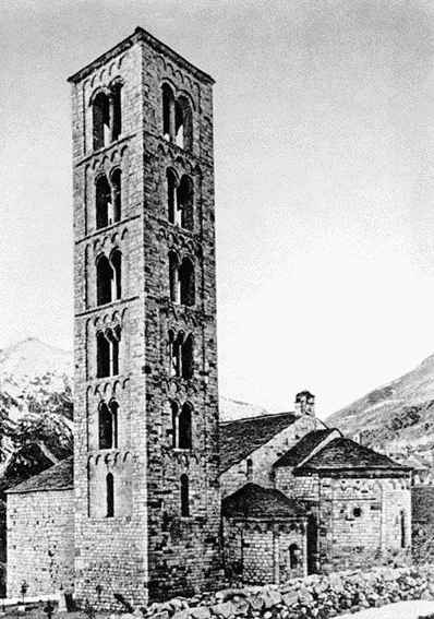 Романские росписи, ныне выставленные в залах Музея каталонского искусства, изначально украшали стены деревенских церквей вблизи Барселоны. Затерянные среди голых скал базилики с высокими ломбардскими колокольнями строились из местного камня. Замкнутый объем вкупе с едва заметной неправильностью форм придавал им сходство со скульптурной композицией. Те же ощущения вызывало и внутреннее пространство, где полумрак, скрывая бедность убранства, подчеркивал яркие краски росписей. Помимо картин, впечатление торжественности создавали архивольты арок, скромная резьба по камню, окруженный светильниками алтарь с распятием или деревянной статуей Мадонны. Слабый свет проникал через узкие, похожие на бойницы длинные окна абсид, выделяя из темноты застывшие, очерченные темным контуром фигуры богов и святых. Вечером, когда вокруг алтаря загорались свечи, пламя озаряло лишь некоторые детали, например лица с резкими чертами и огромными, глядящими в никуда глазами. Суровая тяжеловесность фигур гармонировала с таинственным и фантастическим миром, который стремился создать каждый романский художник.