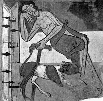 Калека Лазарь. Настенная роспись, 1123. Экспонат музея каталонского искусства