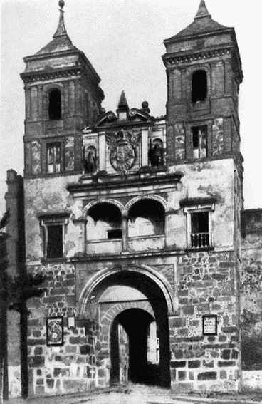 Путь через мост Алькантара ведет к самому прекрасному памятнику своего рода – воротам Солнца, которые были созданы арабским архитектором в начале XII века, то есть после того, как старую столицу заняли испанские войска. Считается, что вначале они являлись частью крепостной стены. Глубокое отверстие в массиве ворот, сложенных из грубоколотых камней, покрыто крестовым сводом. Внешняя часть проема оформлена подковообразной аркой, над которой возвышается еще одна, но уже слепая арка изящного силуэта, опирающаяся на стройные колонны. Сверху тянется двойная полоса тонко профилированной аркатуры (ряд декоративных ложных арок) из переплетающихся деталей, исполненных в виде подков снизу и многочисленных лопастей сверху. Сбоку к воротам примыкают две башни: квадратная и полукруглая. Вверху ворота украшает эффектная терраса с зубцами и пирамидами. Медальон над входной аркой сделан средневековым мастером, изобразившим грациозные женские фигуры, которые несут на блюде отрубленную голову. Согласно преданию, она принадлежит знатному кавалеру Фернану Гонсалесу, оскорбившему двух юных жительниц Толедо. Узнав об этом, король Фердинанд Святой приказал казнить наглеца, а голову передать обиженным девушкам. К памятникам мавританской эпохи относится мост, позже получивший название в честь Святого Мартина. Средняя из пяти его арок достигает 30 м в высоту. Величественное сооружение с монументальными башнями по бокам своим видом напоминает о далеком прошлом города.